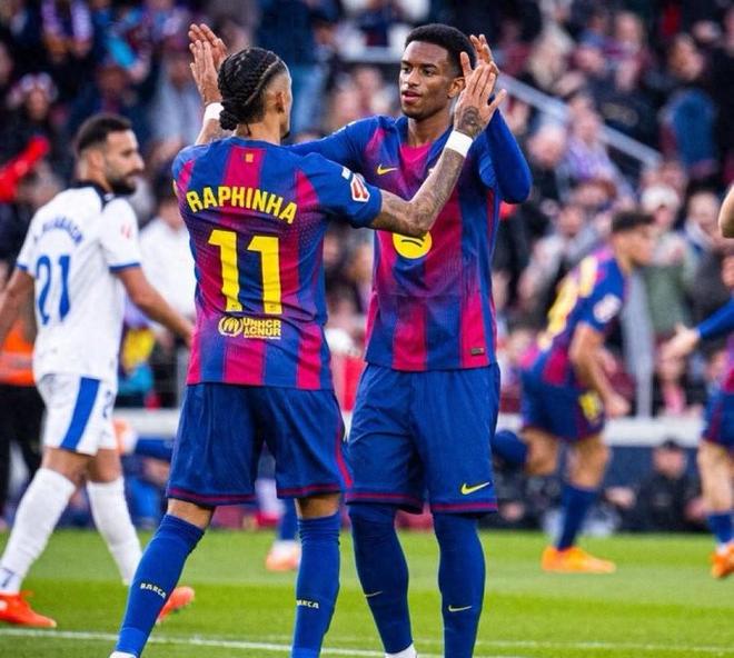 比赛还有一个温暖细节:开场时,拉菲尼亚佩戴着队长袖标出战。当德容替补登场换下拉什福德后,拉菲尼亚第一时间主动走向德容,亲手将象征队长身份的红蓝袖标递给他。